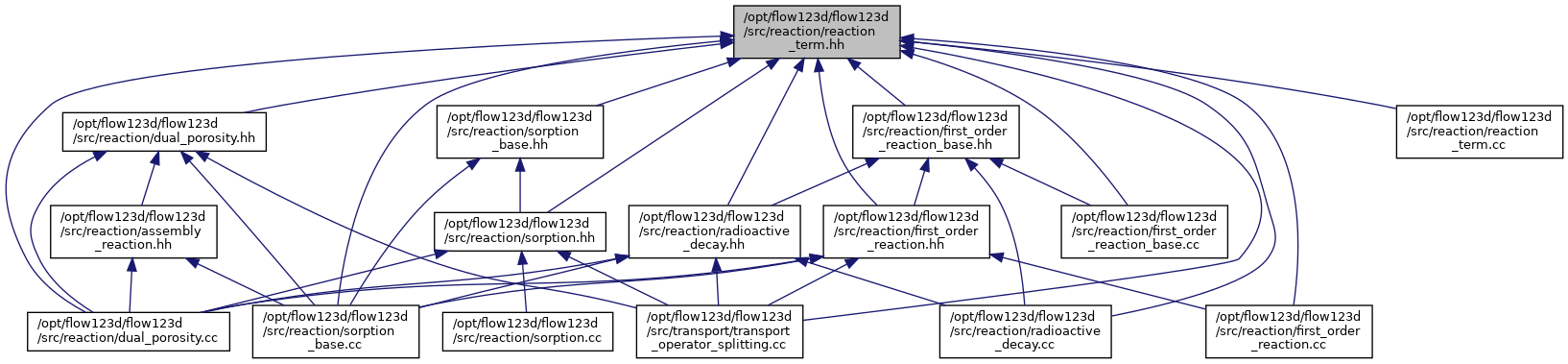 Class ReactionTerm is an abstract class representing reaction term in transport. More...