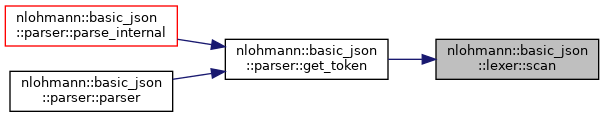 token_type nlohmann::basic_json< ObjectType, ArrayType, StringType, BooleanType, NumberIntegerType, NumberUnsignedType, NumberFloatType, AllocatorType >::lexer::scan ( )