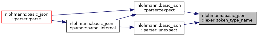 static std::string nlohmann::basic_json< ObjectType, ArrayType, StringType, BooleanType, NumberIntegerType, NumberUnsignedType, NumberFloatType, AllocatorType >::lexer::token_type_name ( token_type  t)