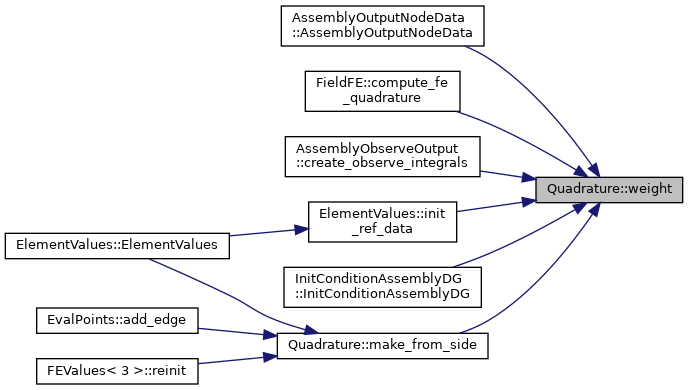 List of weights to the quadrature points.