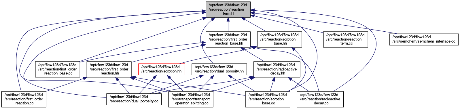 Class ReactionTerm is an abstract class representing reaction term in transport. More...