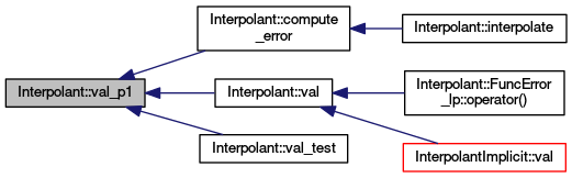 This function evaluates the P1 interpolant at x. It does not check the interval, does not provide extrapolation and does not collect statistics.