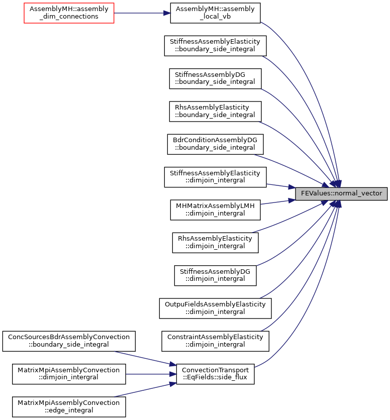 | Returns the normal vector to a side at given quadrature point. More... | |